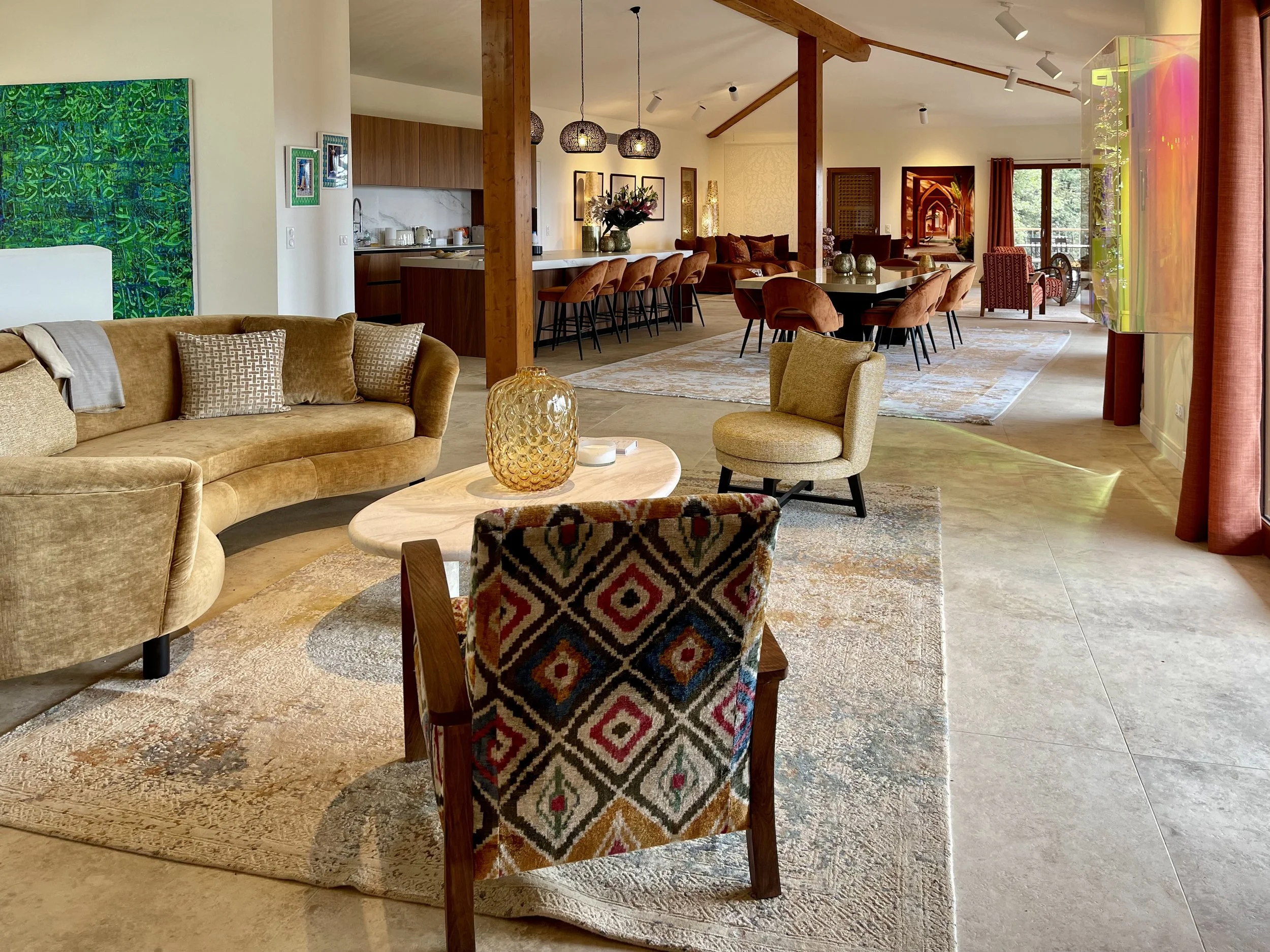 Handcrafted cedar Moroccan doors, warm textures and organically designed bathrooms that are soothing to the eye.